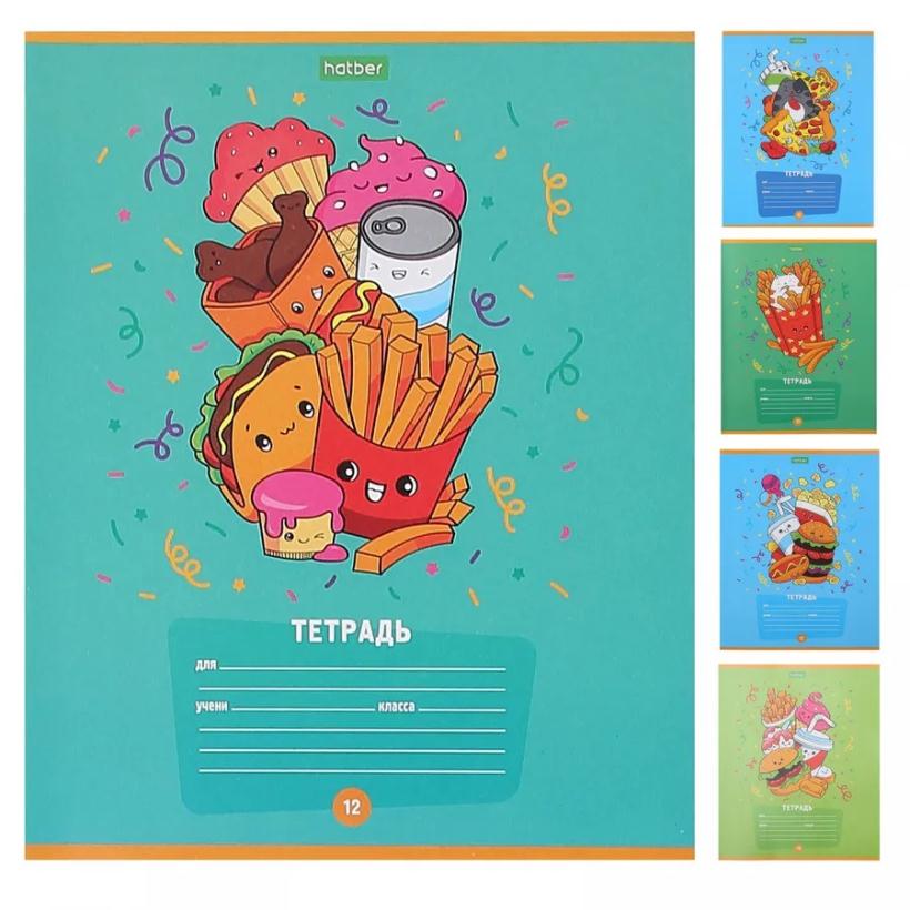 Тетрадь А5 12л Hatber ECO Фаст фуд пати клетка, на скобе, обложка мелованный картон