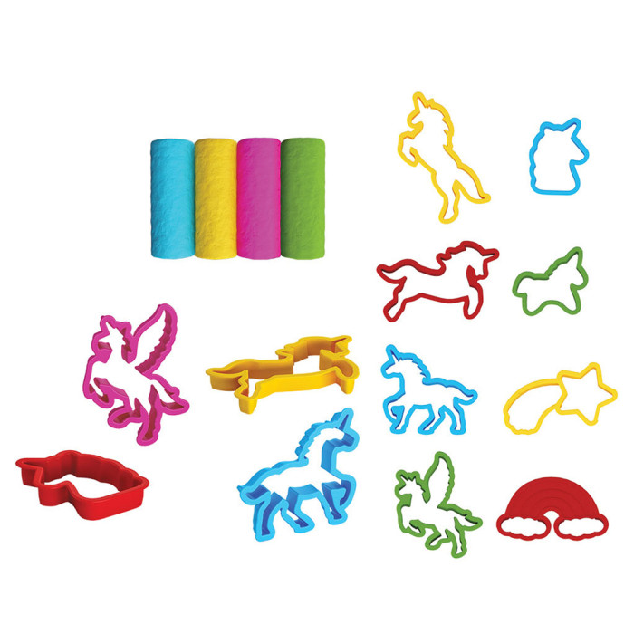 Можно слепить разноцветных единорогов, ведь так много разных форм, набор обязательно понравится малышке!