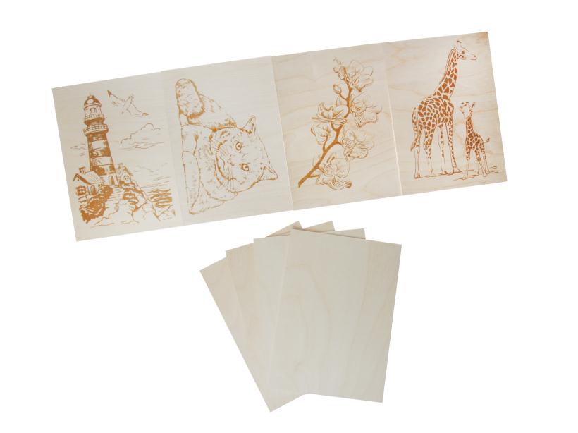 Мы положили в набор 8 досок, причем 4 из них с рисунком и 4 чистые, для собственных идей.