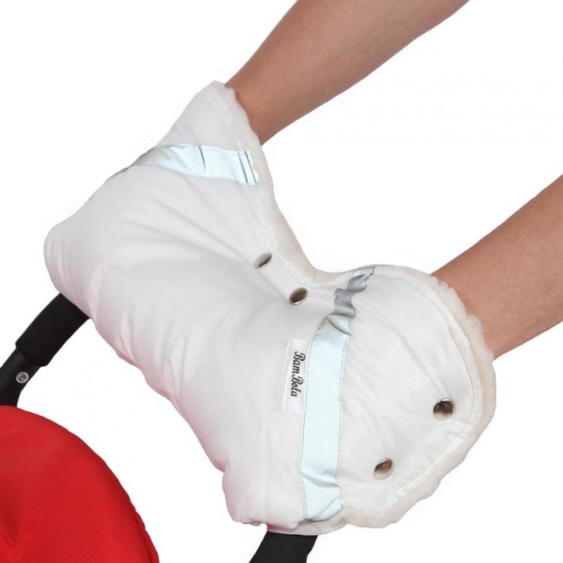 Муфта для коляски шерстяной мех+плащевка+кнопки Белая 053В
