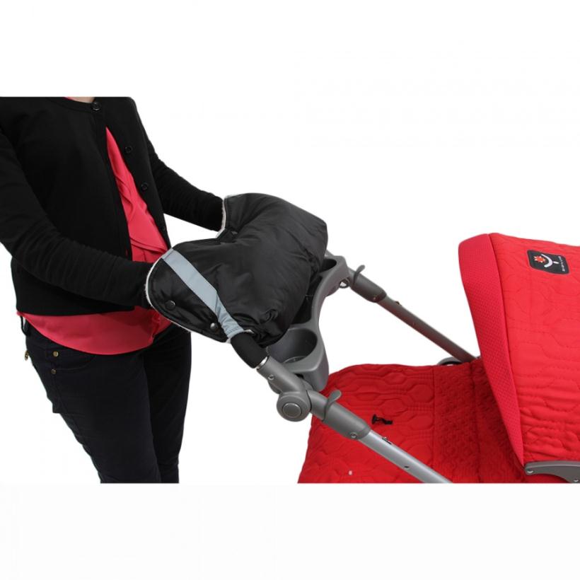 Муфта на ручку коляски очень легко одевается и защищает ваши руки от холода. Ткань муфты водоотталкивающая, она утеплена мехом и небольшим слоем синтепона. Различные цветовые решения позволят вам подобрать муфту в тон вашей коляски. Такая вещь просто незаменима во время зимних прогулок!