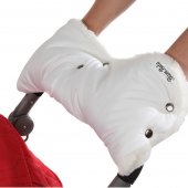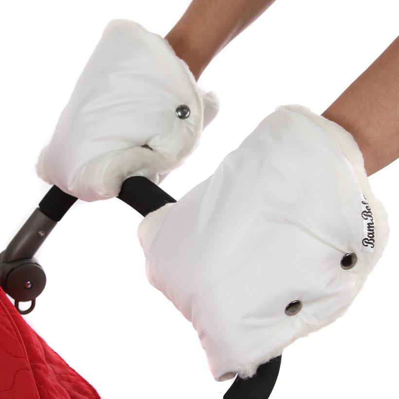 Муфты-варежки белые для коляски шерстяной мех+плащевка (лайт)