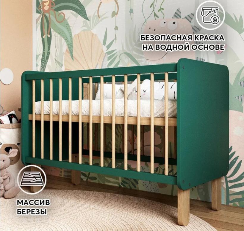 Кроватка изготовлена из массива березы, боковые стенки из МДФ класса Е1, безопасного для мебели 0+.