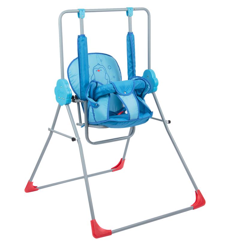 Сиденье выполнено из мягких тканей с приятным наполнителем, чтобы малыш смог дольше пребывать на качелях