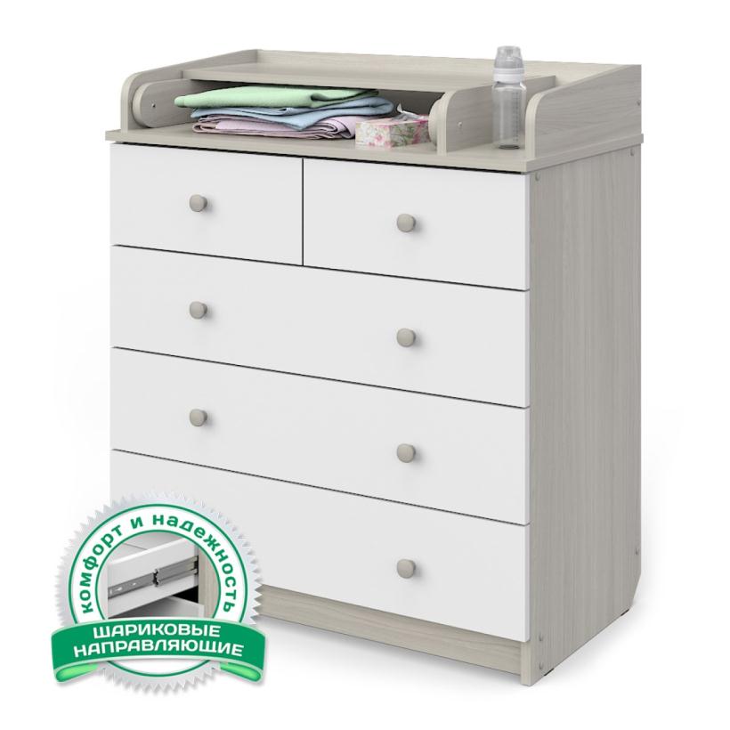 Комод Атон серия Сириус-2 805 ЛДСП ясень шимо светлый-белый, 5 ящиков