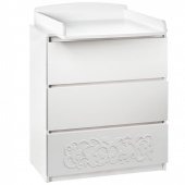 Эргономичный пеленальный комод с отделением для средств по уходу за ребенком. "Мягкая" форма фасадов (МДФ) с логотипом в 3D- исполнении.