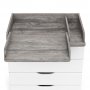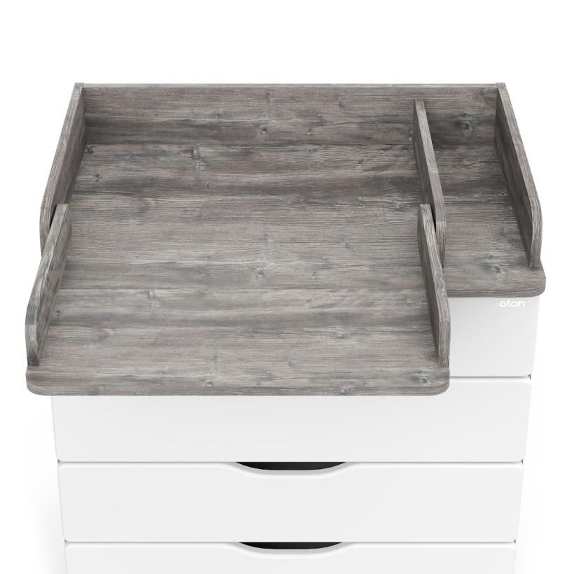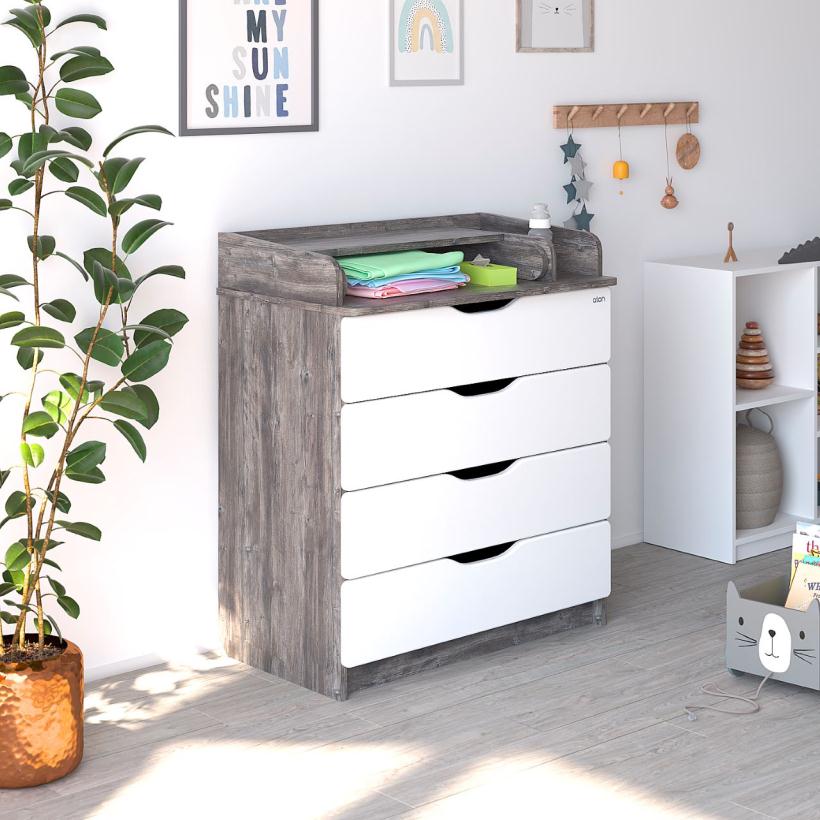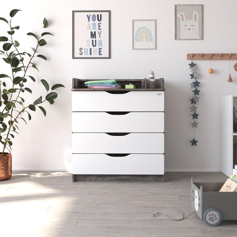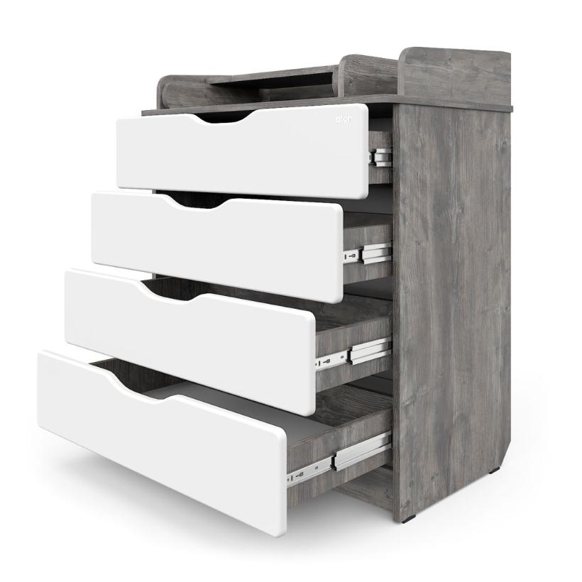 Эргономичный пеленальный комод с отделением для средств по уходу за ребенком. "Мягкая" форма фасадов (МДФ) с логотипом в 3D- исполнении. Корпус комода выполнен из ЛДСП PREMIUM-класса с особенным объемным тиснением поверхности и современными,натуральными расцветками. Ящики комода оснащены телескопическими направляющими, придающими плавность и бесшумность хода.