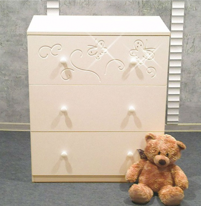 Комод Островок уюта "Бабочки" съемный пеленальный стол, декор кристаллы Swarovski, айвори