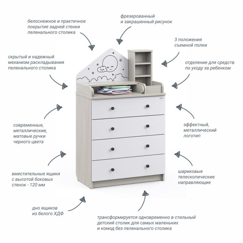 Детский комод трансформер Атон Сириус ALF 804 ЛДСП - это не просто комод, это уникальная система, которая сделает детскую комнату удобной и уютной.