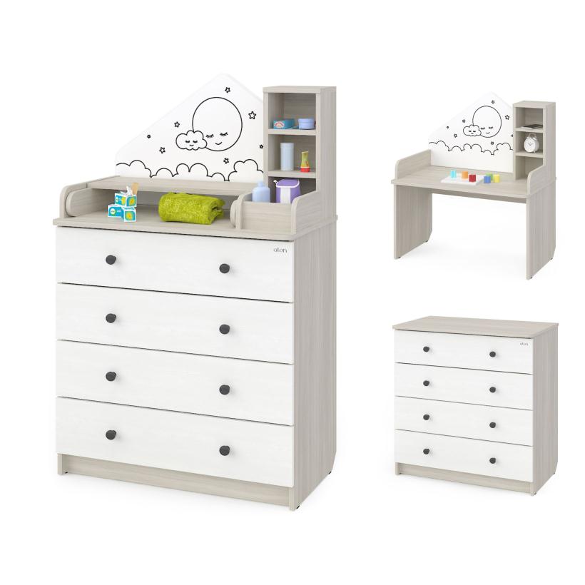 Комод-трансформер Атон Сириус Alf ясень шимо светлый-белый, 4 ящика