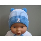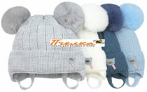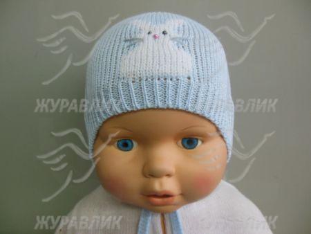 Веселая шапочка для малышей с завязками. Зайчик украшен бисером.