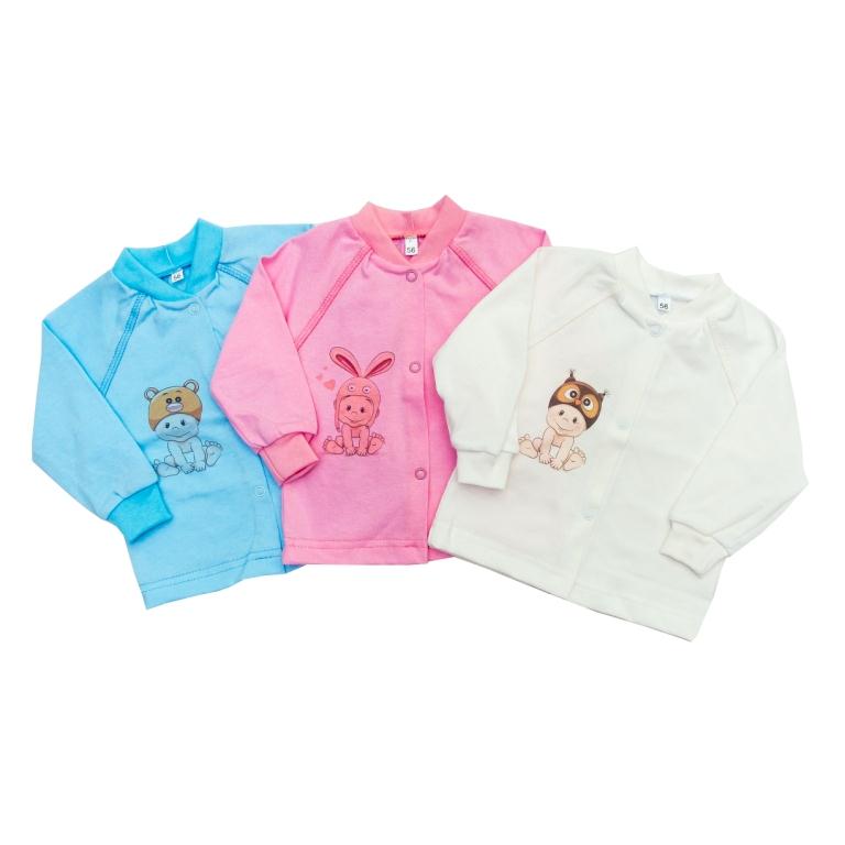 Кофточки из мягкого бельевого трикотажа не запахиваются, а застегиваются спереди на кнопочки или пуговки, хорошо "сидят" на малышах и придают им аккуратный внешний вид. Выбирая кофточки для самых маленьких, лучше всё-таки отдать предпочтение моделям не на пуговицах, а на кнопках: во-первых, их быстрее застёгивать, а во-вторых, нет опасности, что кроха оторвёт плохо пришитую пуговицу и проглотит её. В любом случае, при покупке и кнопкам, и пуговицам нужно уделить особое внимание. Пуговицы должны быть тонкими и плоскими, чтобы малыш, лёжа на животике, не ощущал их. Кнопки должны быть хорошо закреплены, легко застегиваться и без усилий расстёгиваться (нужно проверить это ещё в магазине). В противном случае при очередном расстёгивании кнопку можно просто выдернуть из ткани, оставив на одежде дырку.