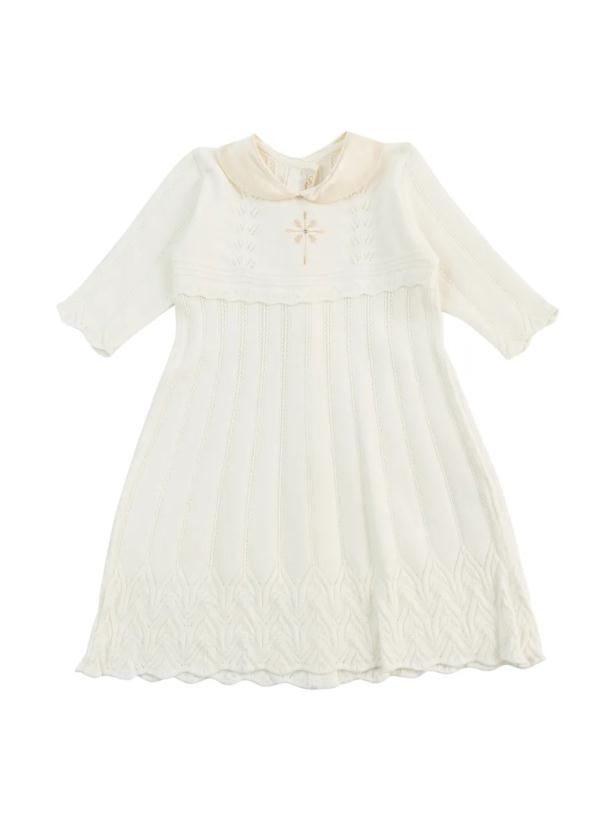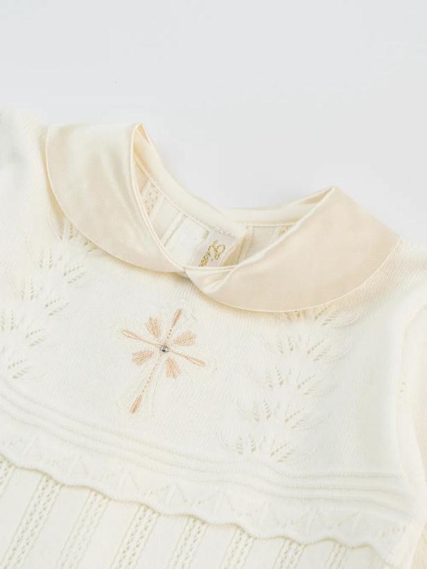 Платье крестильное вязаное р.62-44, цвет ванильный арт 4076