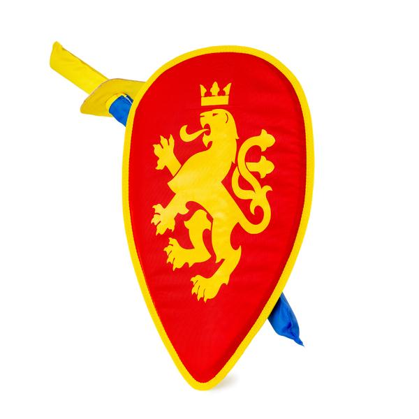 Детские щит и меч из ткани с уплотненным каркасом позволят любому мальчишке перевоплотиться в образ средневекового рыцаря и почувствовать себя бравым героем ордена Льва, защищающим воображаемые сокровища своего клана.