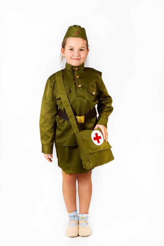 Детский военный костюм позволит вашему ребенку идеально войти в образ доблестной санитарки.