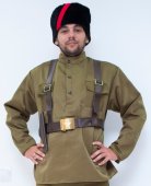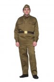 Состав комплекта: Гимнастерка с золотыми пуговицами, ремень с бляшкой , пилотка со звездой, юбка, сумка.