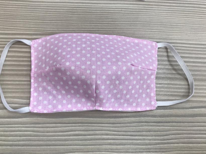 Маска гигиеническая детская (белый - снаружи, розовый в горох - изнутри) в индивидуальной упаковке