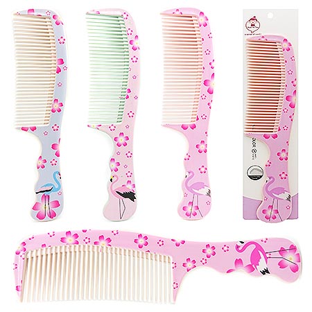 Расческа - гребень KWELT "Розовый фламинго" 22 см с ручкой в пакете с европодвесом