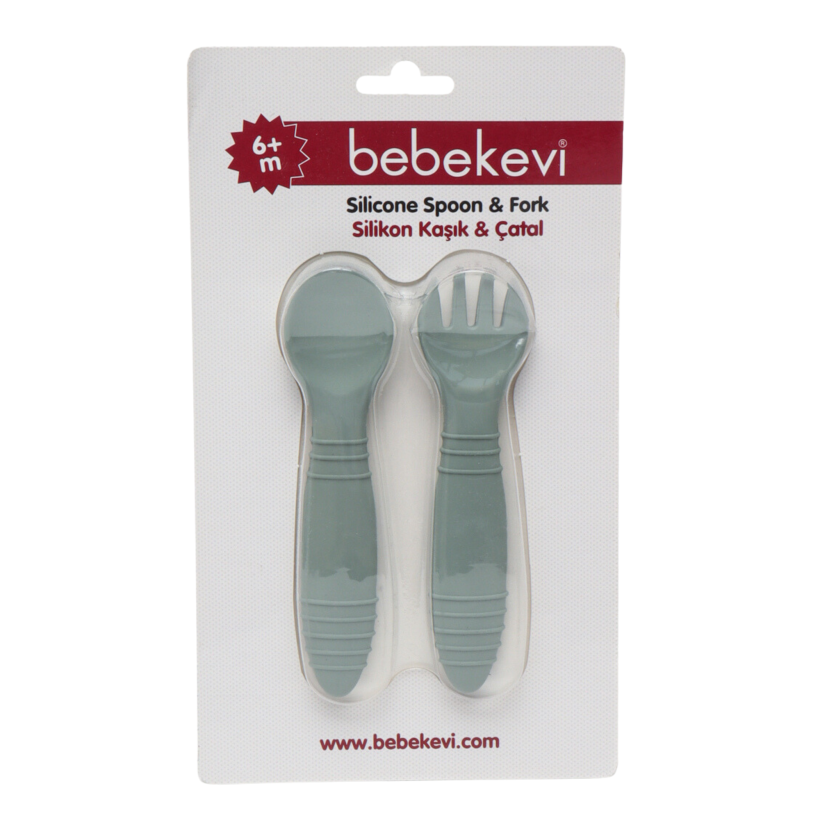 Набор Bebekevi ложка и вилка из силикона мятно-зеленый BEVİ1261-1