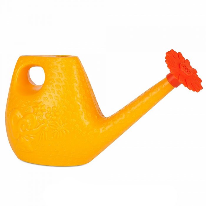 Она имеет изогнутую форму носика и широкую лейку с распылителем.