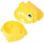 - Особенно крохам понравится дизайн изделия, выполненного в виде забавного кролика насыщенного желтого цвета со смешной мордашкой и ушками на крышке.