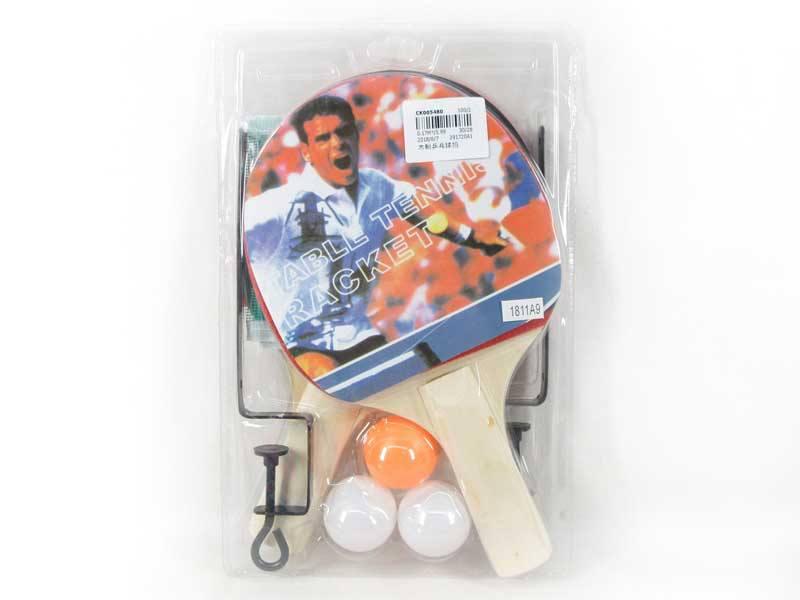 Набор для пинг-понга деревянный (2 ракетки + мячи 3шт. + сетка + крепление) арт.1811А9