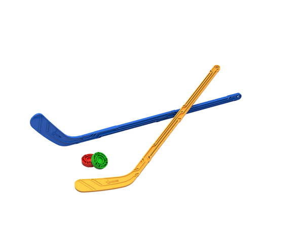 Набор для игры в хоккей, состоящий из 2 клюшек и 2 шайб, произведен из прочной высококачественной пластмассы. С его помощью ваши дети смогут играть в хоккей. Спортивные игры на свежем воздухе благотворно влияют на здоровье ребенка. Регулярные прогулки в зимнее время, в свою очередь, помогают укрепить иммунитет. Набор обладает небольшим весом, поэтому его можно будет взять с собой куда угодно. Изделия имеют оригинальный и эргономичный дизайн.