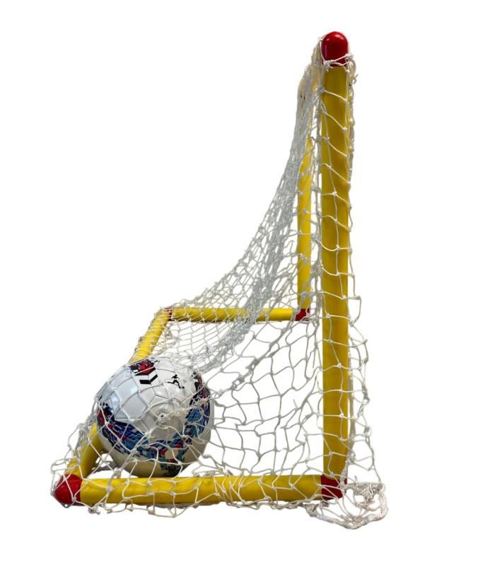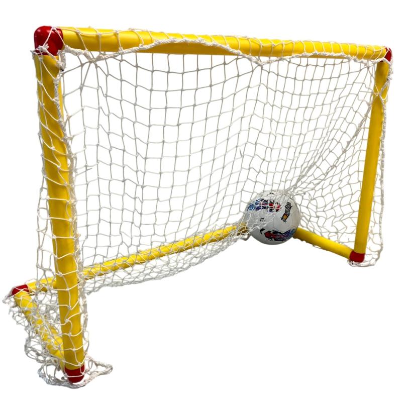 Детские ворота с сеткой для игр в футбол или хоккей с мячом.