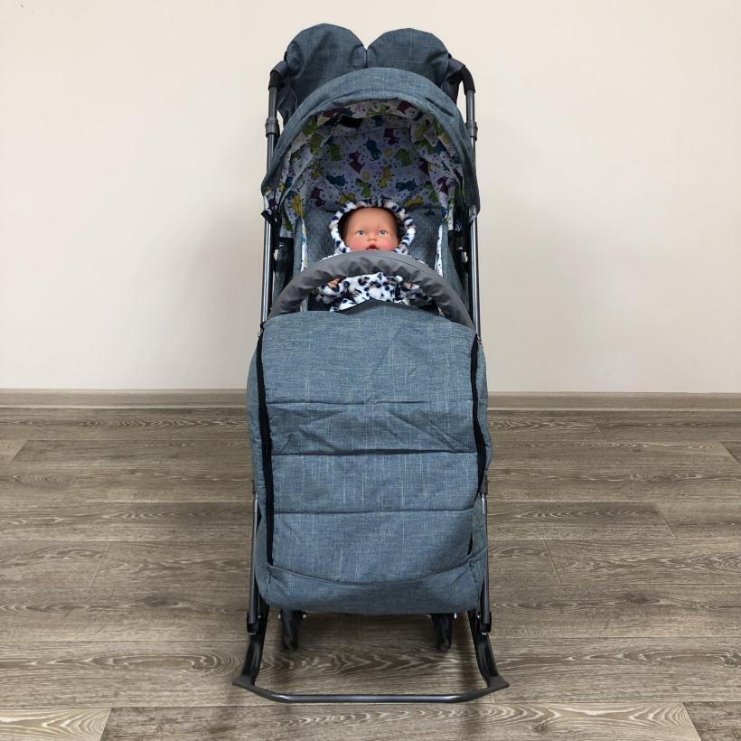 Санки-коляска Galaxy Snow kids 3-3С джинс серый с зеленым