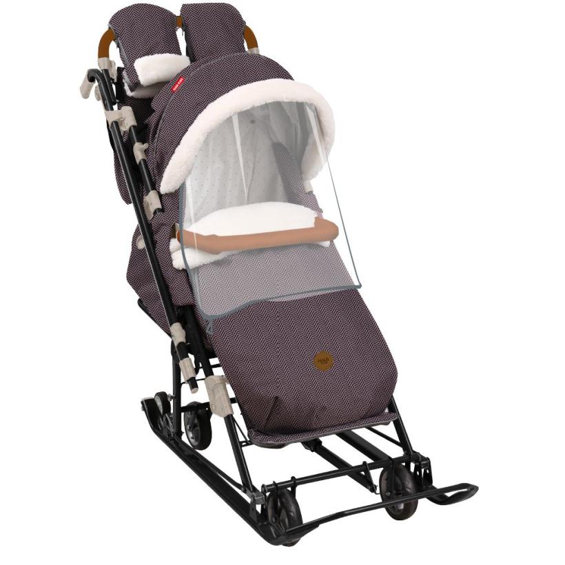 Санки-коляска с новым кроем чехла с круговой молнией.