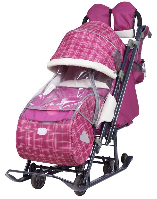 Санки-коляска Ника детям вишневый в клеточку НД7-4