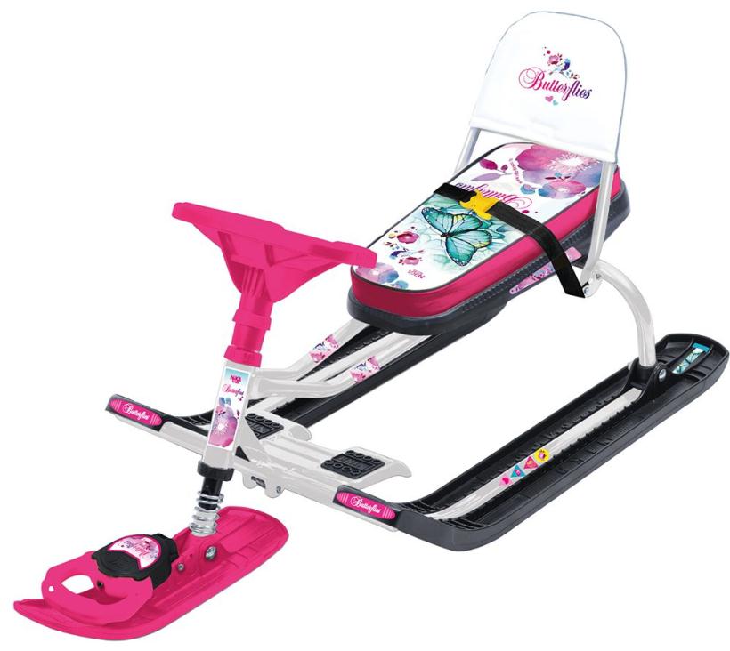 Снегокат Ника Тимка спорт 4-1 принт бабочки, белый каркас ТС4-1
