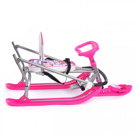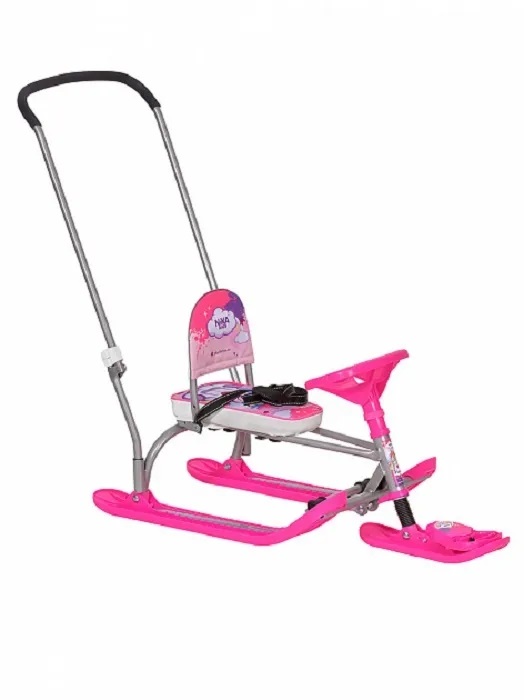 Снегокат имеет складную, двигающуюся по оси спинку и два положения сиденья, для обеспечения наибольшего комфорта.