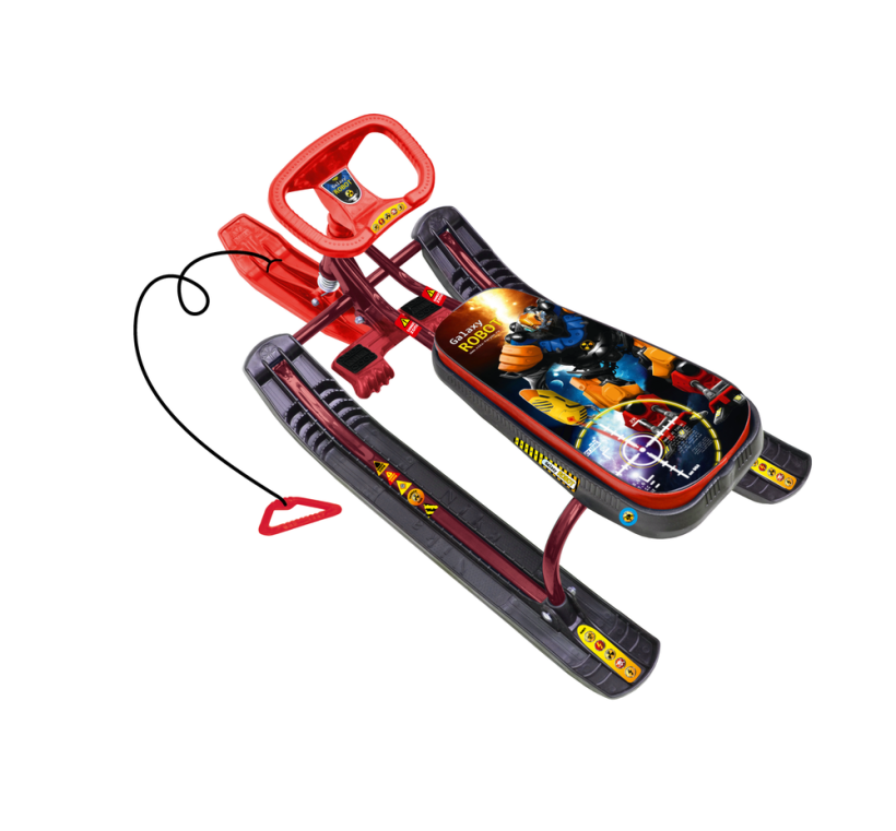 Снегокат предназначен для перевозки детей от 7 до 12 лет по плотному снегу или льду, катанию с горок. Имеет сварную конструкцию из стальных труб, пластмассовые лыжи и мягкое сиденье, обтянутое искусственной кожей с рисунком .